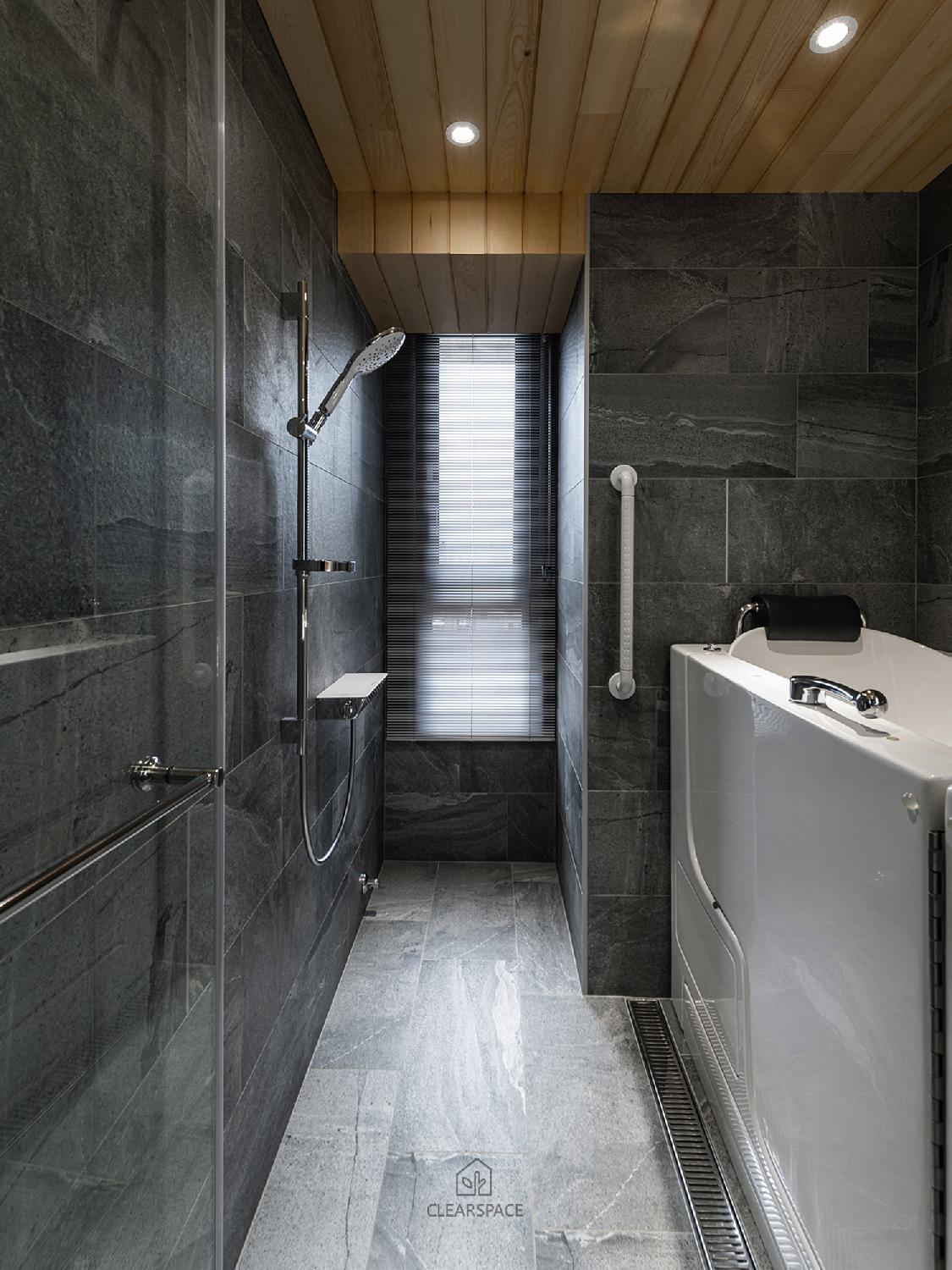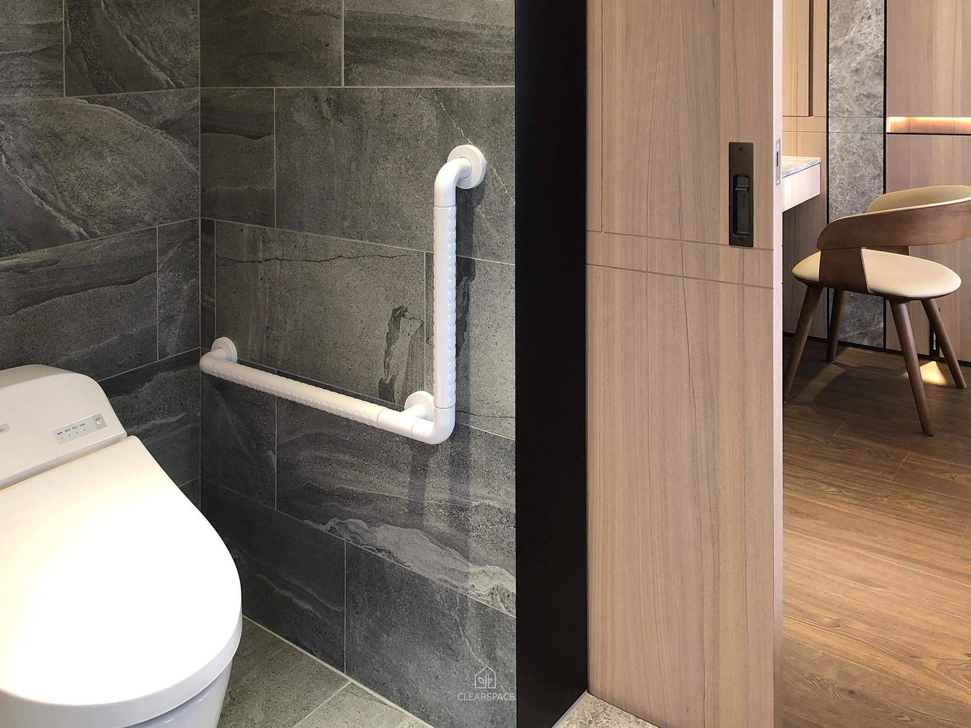 防滑磁磚、裝設安全把手,強化洗澡空間的安全性。