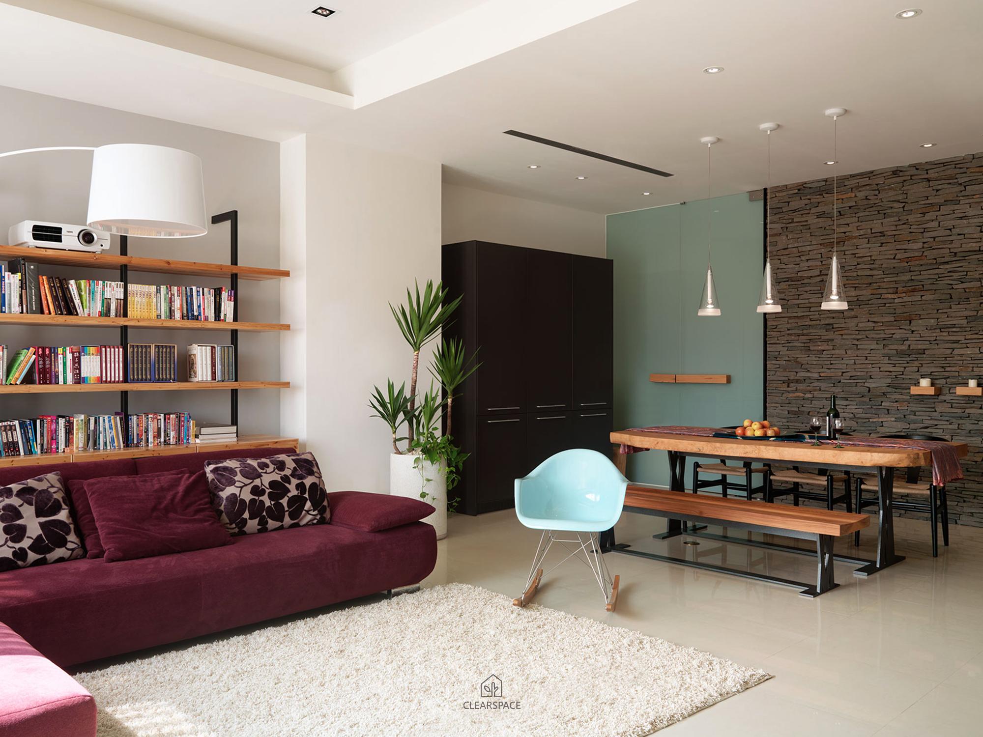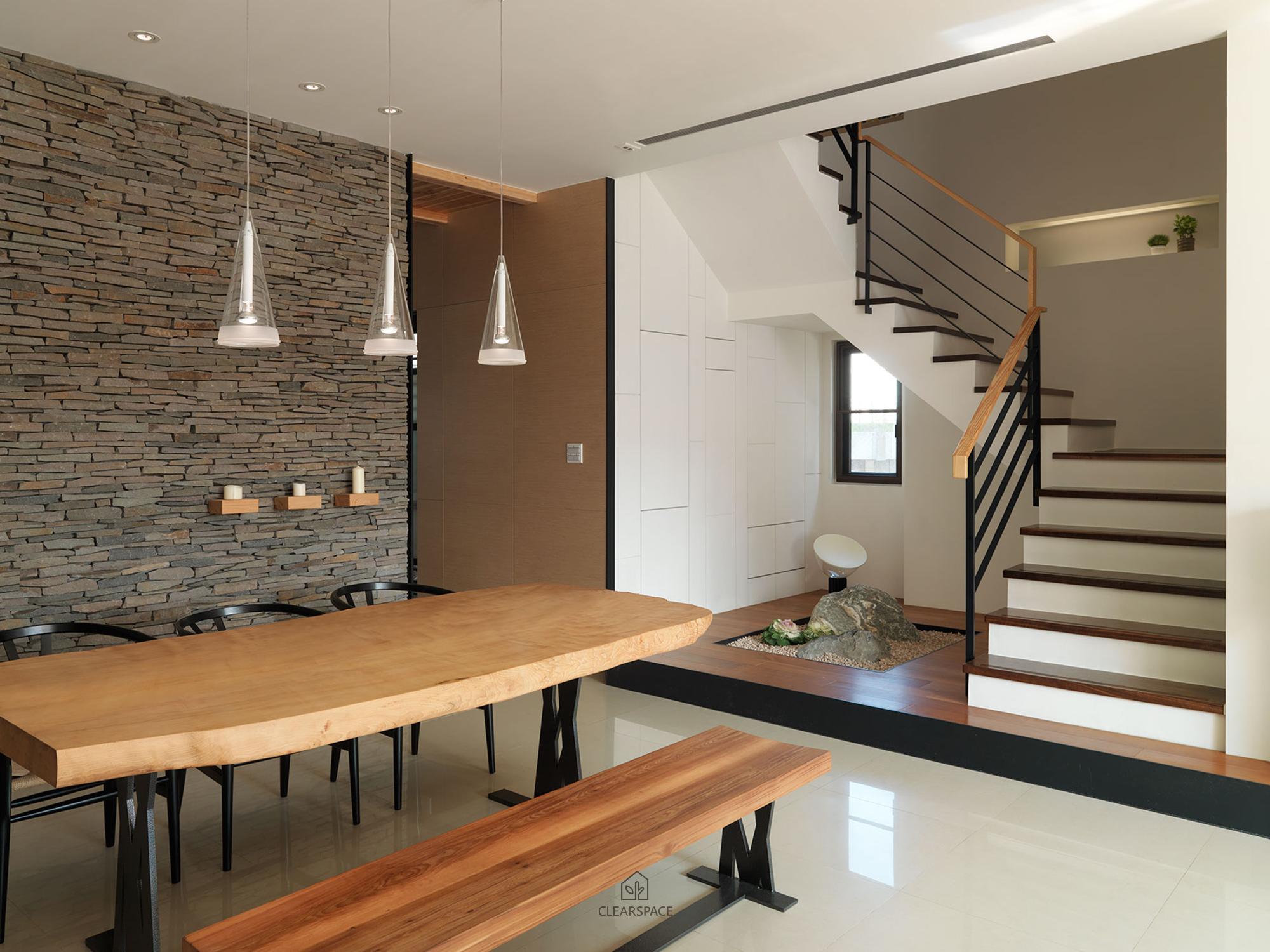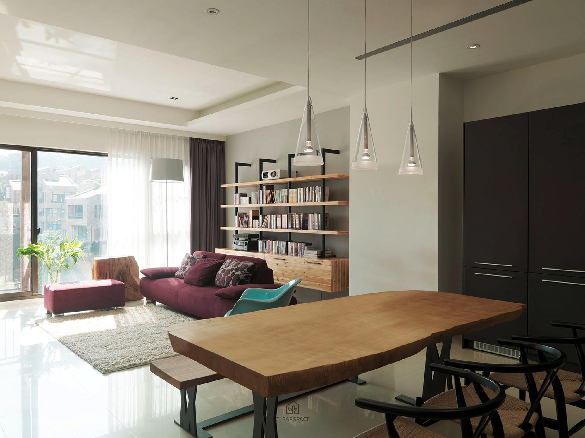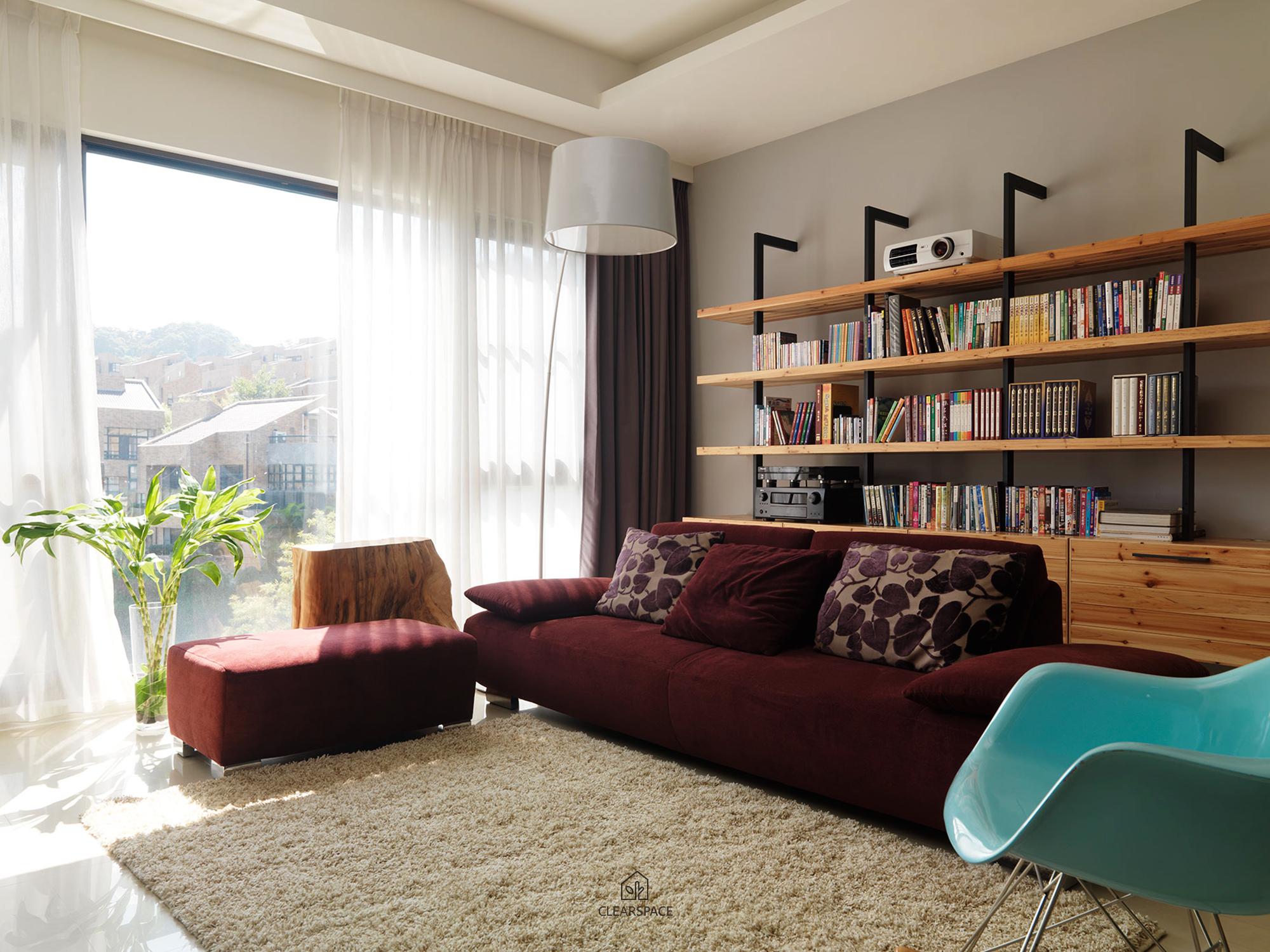 在室內面積26坪大小的主臥空間,規劃出臥眠區、淋浴區、泡澡區、蒸氣室區、閱讀區(兼具視聽機能)。整個區域以開放式的手法規劃,設計360度可旋轉的TV,滿足主人的視聽娛樂享受;泡澡區旁的局部石材成為與淋浴區域的介面關係,更引申成為的掛衣區域,具檔水效果;大面積的落地窗,透過智能系統的安排,讓主人在泡澡時也能享受到室外的好風景,不必擔心個人隱私問題。空間中良好的通風特性、暖風機的安排、足夠的面積,解決了衛浴、臥眠區域完全開放規劃下所擔心的潮濕問題,天花運用勾縫線條,延伸向外,輕鬆拉進室外環境綠意。