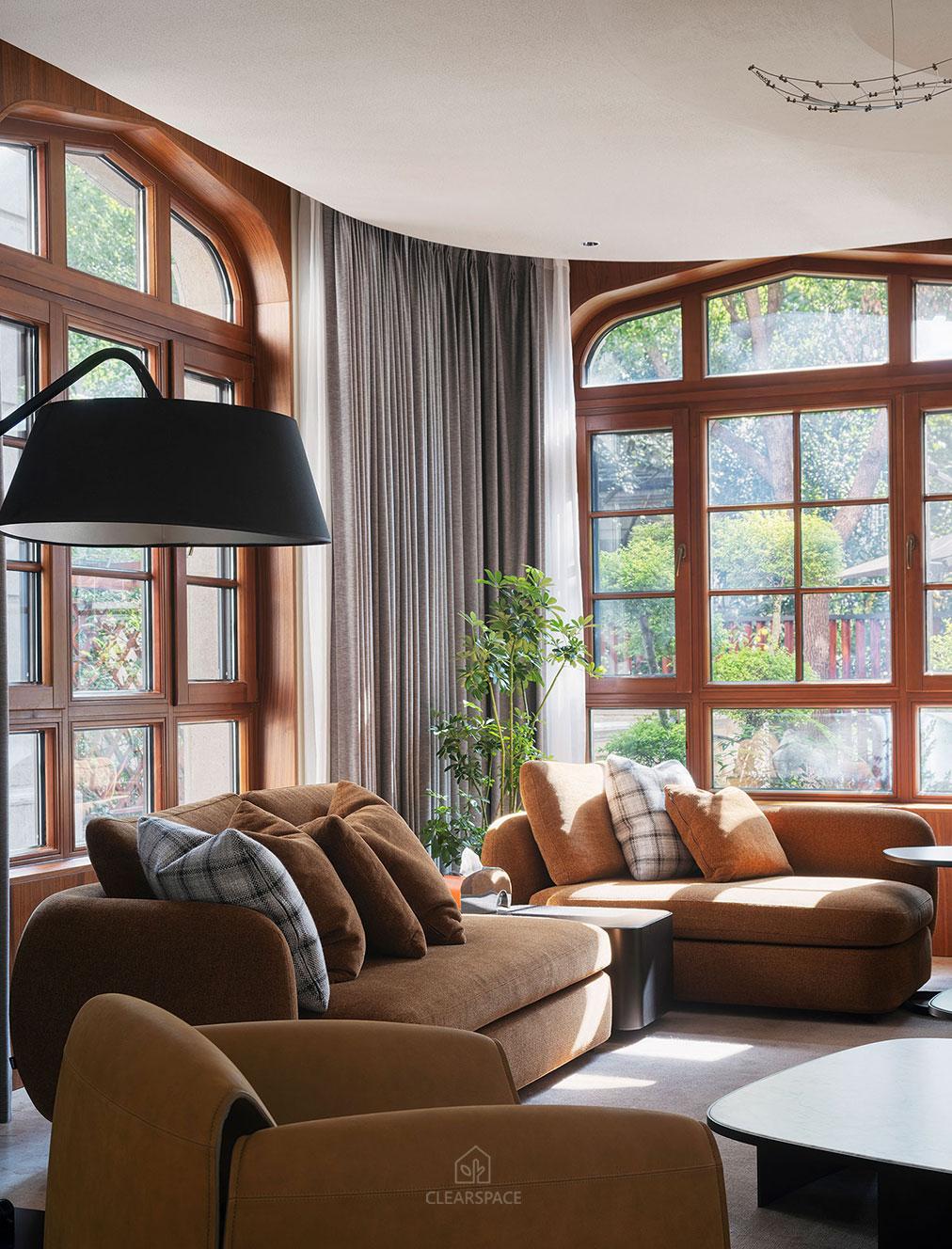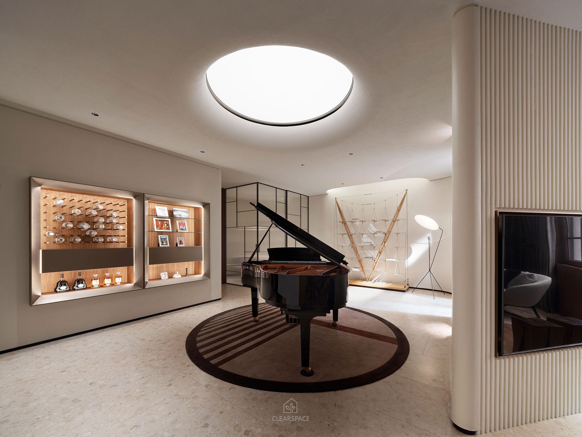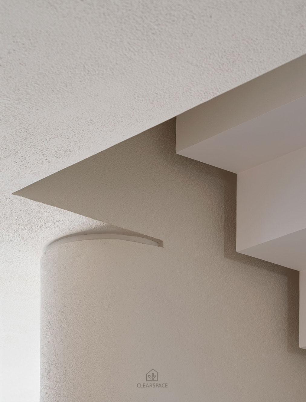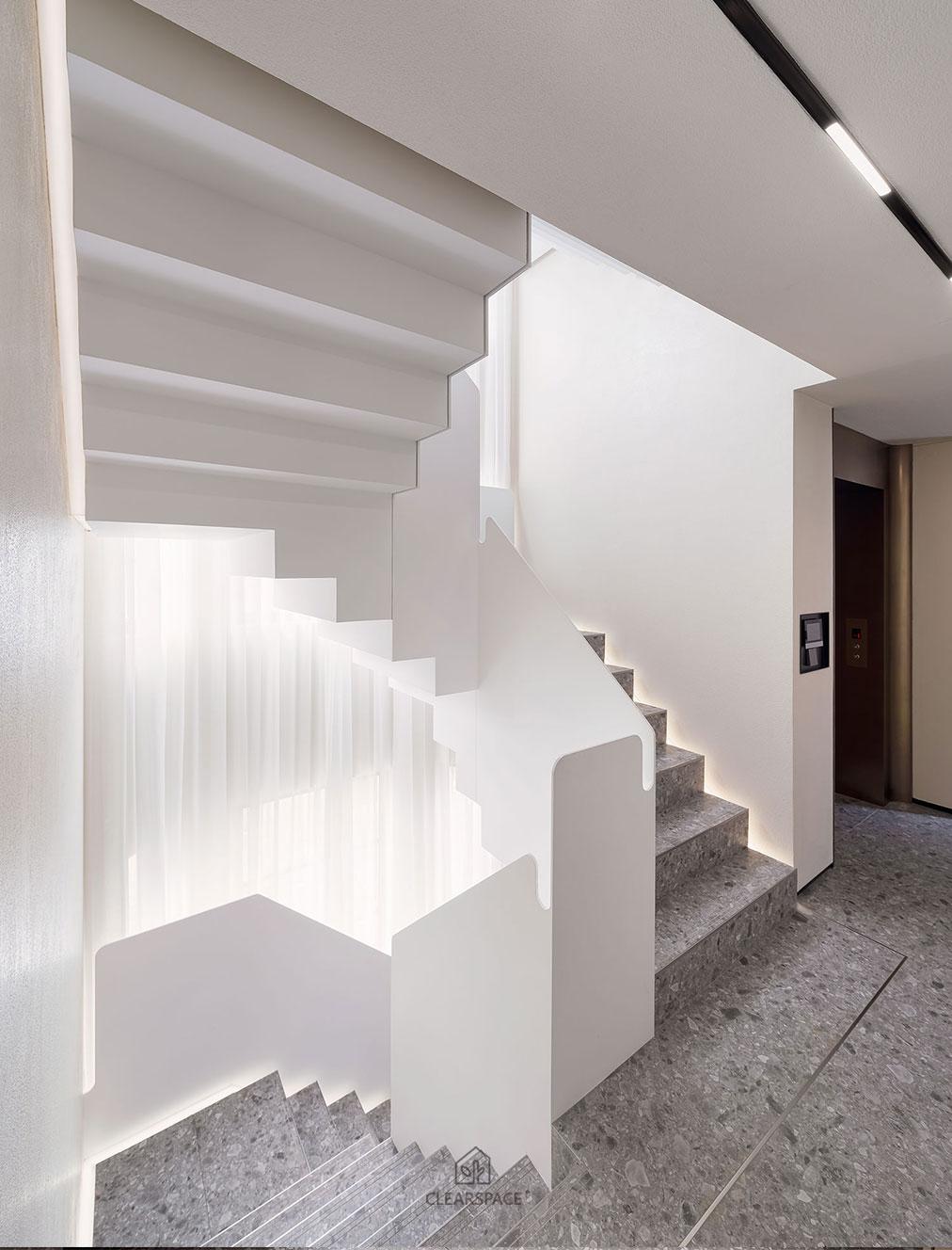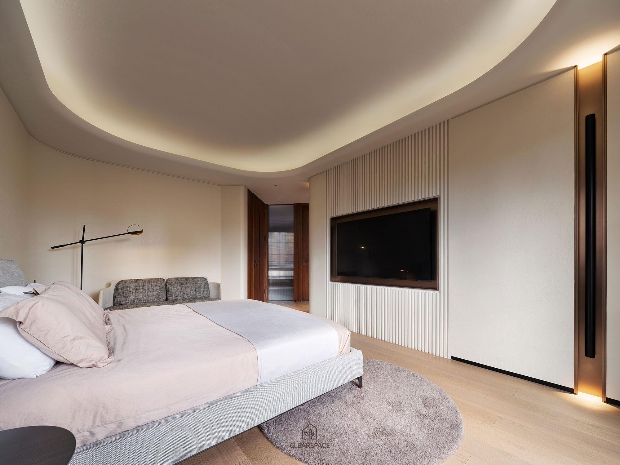 本住宅室內設計以「現代洞窟」為隱喻,重新詮釋「家」的本質~一個和平歸屬與心靈安放的居所、靜謐包覆的空間,讓人感受到被保護被滋養,並在情感上獲得安定與歸屬感。設計概念源自業主家族鋼鐵工廠常見的地下採掘洞窟形態,以「來自土地的庇護」為起點,轉化為具象空間語言。靈感來自自然地貌之極簡柔和曲線、溫潤質感與低彩色調,格局以鑽石型配置,象徵如鋼鐵般的堅毅永恆,營造出不只觸動視覺更觸動心靈的生活場域。