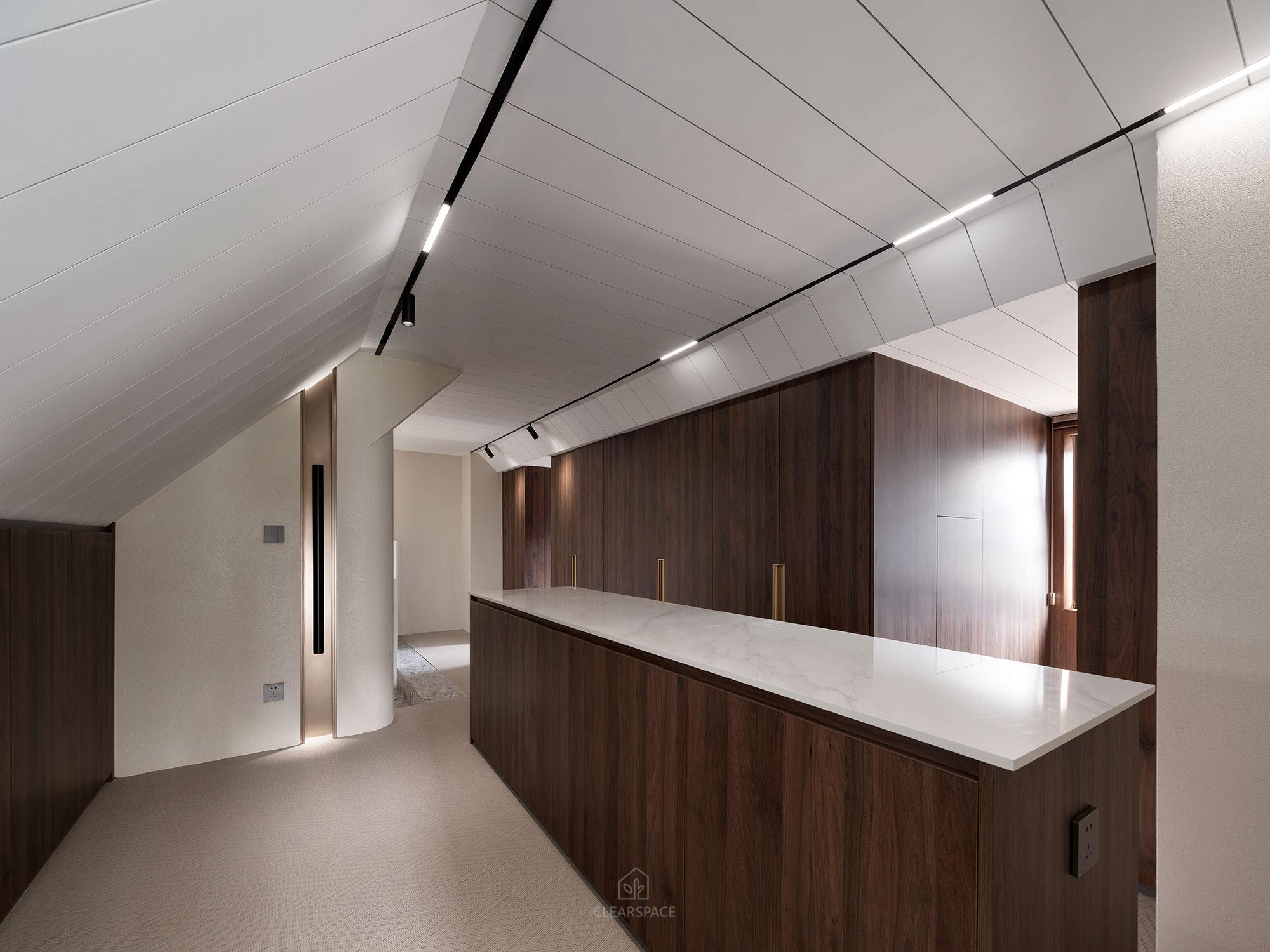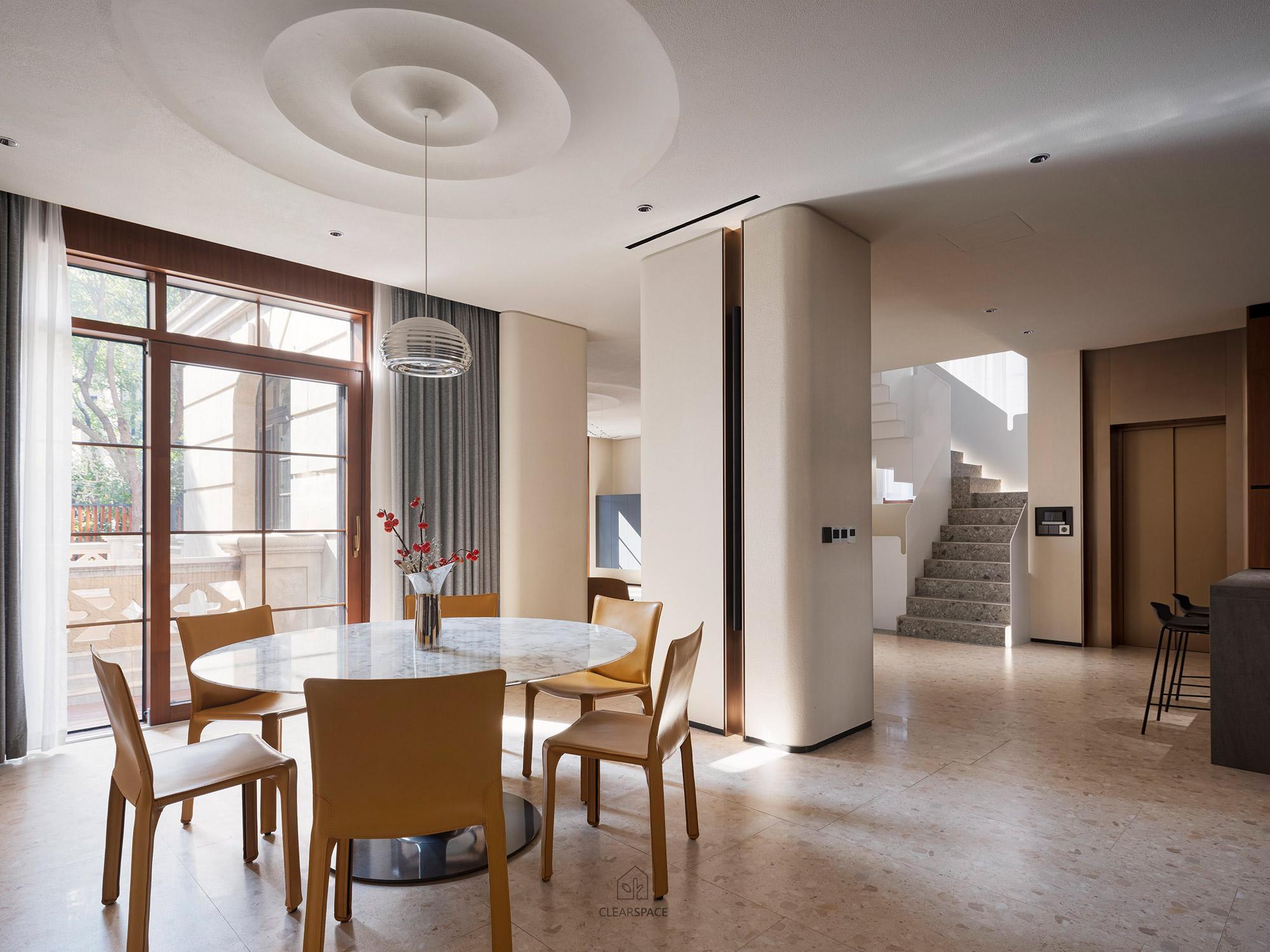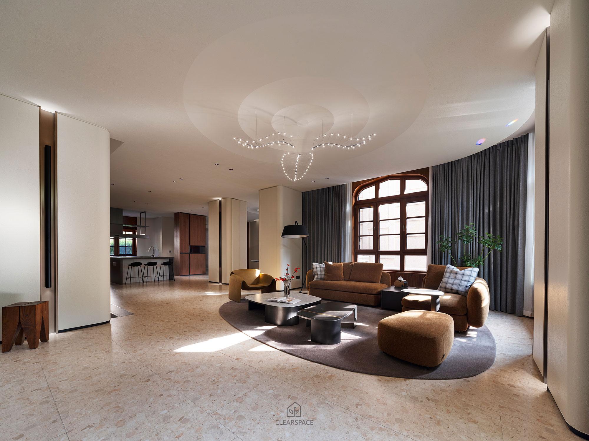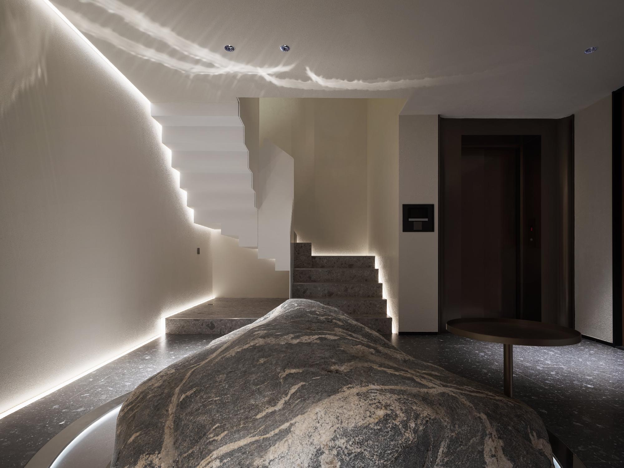 This residential interior design uses the metaphor of a “modern cave”to reinterpret the essence of “home” —a peaceful place of belonging and spiritual refuge. It creates a tranquil, enveloping environment where occupants feel protected, nurtured, and emotionally grounded. Inspired by the underground mining caves found in the owner’s family steel factory, the concept transforms “earthly shelter”into a tangible spatial language. The diamond-shaped layout, inspired by natural landscapes, uses minimalist soft curves, warm textures, and muted tones to symbolize the strength and permanence of steel, creating a space that comforts both sight and soul. Materials include earth-derived beige natural paints, stone, tiles, wood veneer, and iron elements, balancing sustainability with refined texture and aligning with low-carbon principles.