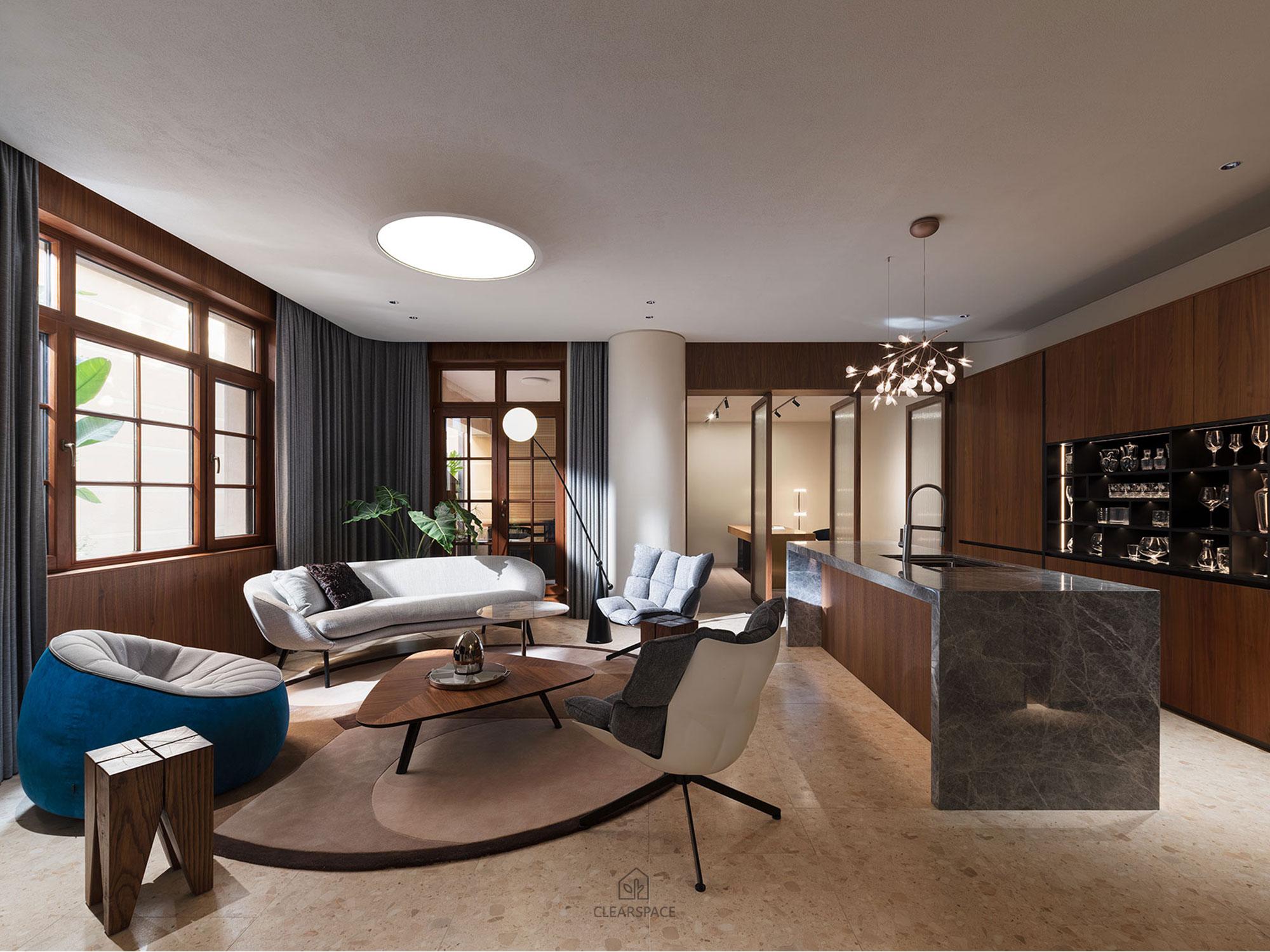 Furniture from high-end Italian and French brands such as Minotti, Poliform, Cassina, and Ligne Roset blends minimalism with modern aesthetics, creating an elegant, warm atmosphere. The layout and circulation are carefully planned to fit user habits, enhancing functionality and emotional connection, reflecting a human-centered design approach. Each material is carefully chosen to soothe body and mind; each space is shaped to respond to occupant needs and emotions.