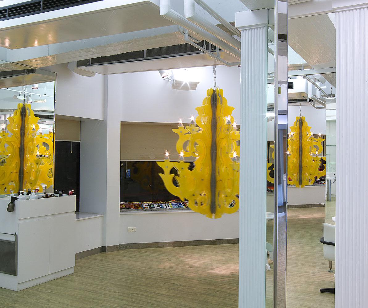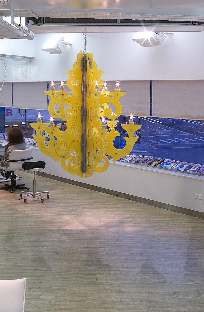 電腦雷射切割壓克力,再一片一片拼湊出新古典主義風之大吊燈。